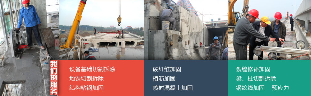 擁有自行研發(fā)生產(chǎn)的專(zhuān)業(yè)性混凝土切割機(jī)設(shè)備:液壓繩鋸機(jī)8臺(tái)、液壓墻鋸機(jī)4臺(tái)、液壓鉆孔機(jī)10臺(tái),電動(dòng)鉆孔機(jī)20臺(tái)